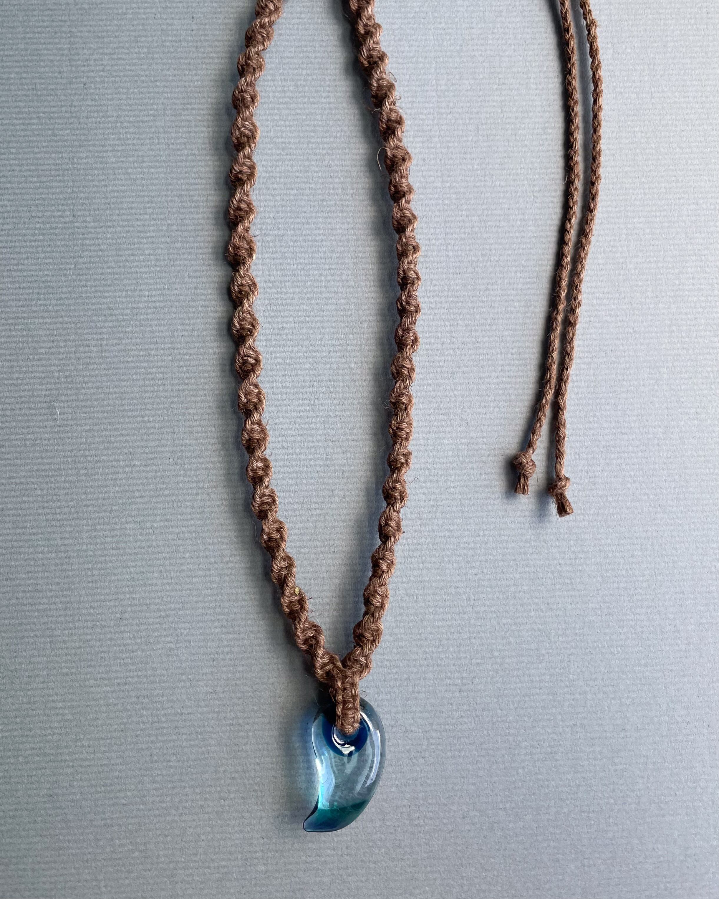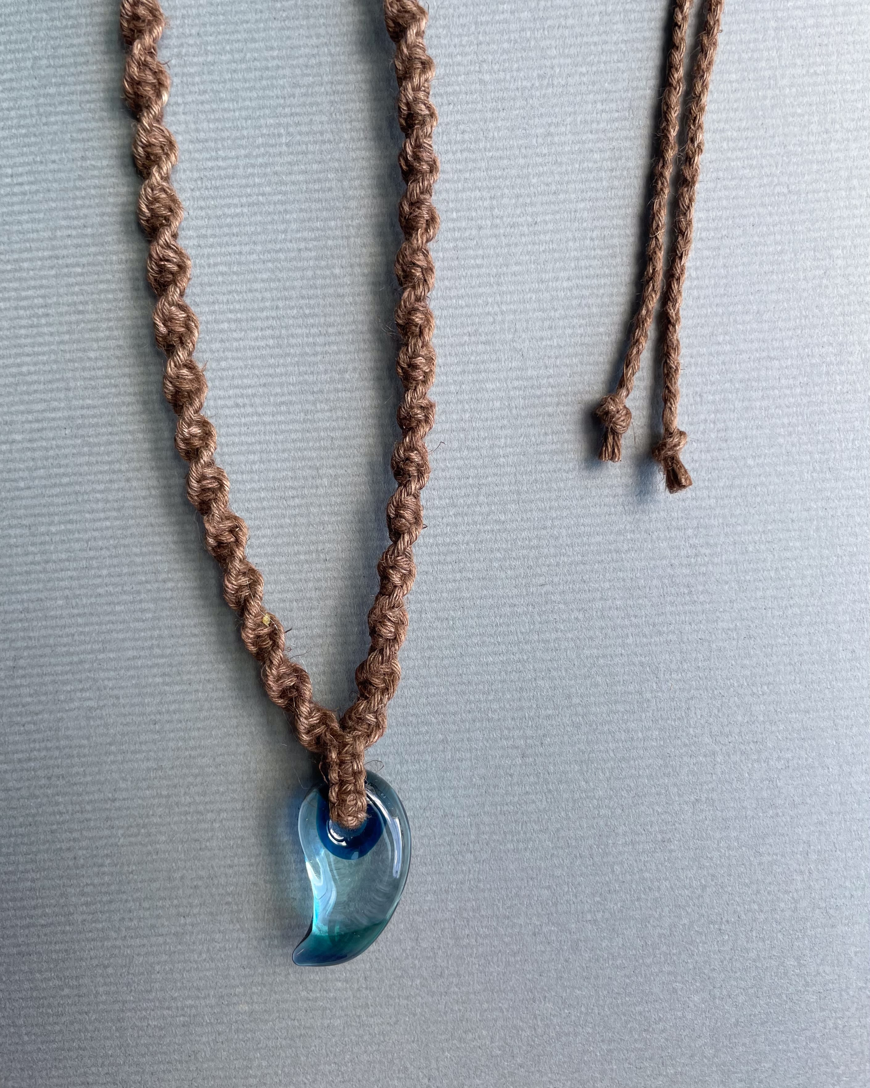 ガラス工房の方に作っていただいた勾玉のチャームを使用。