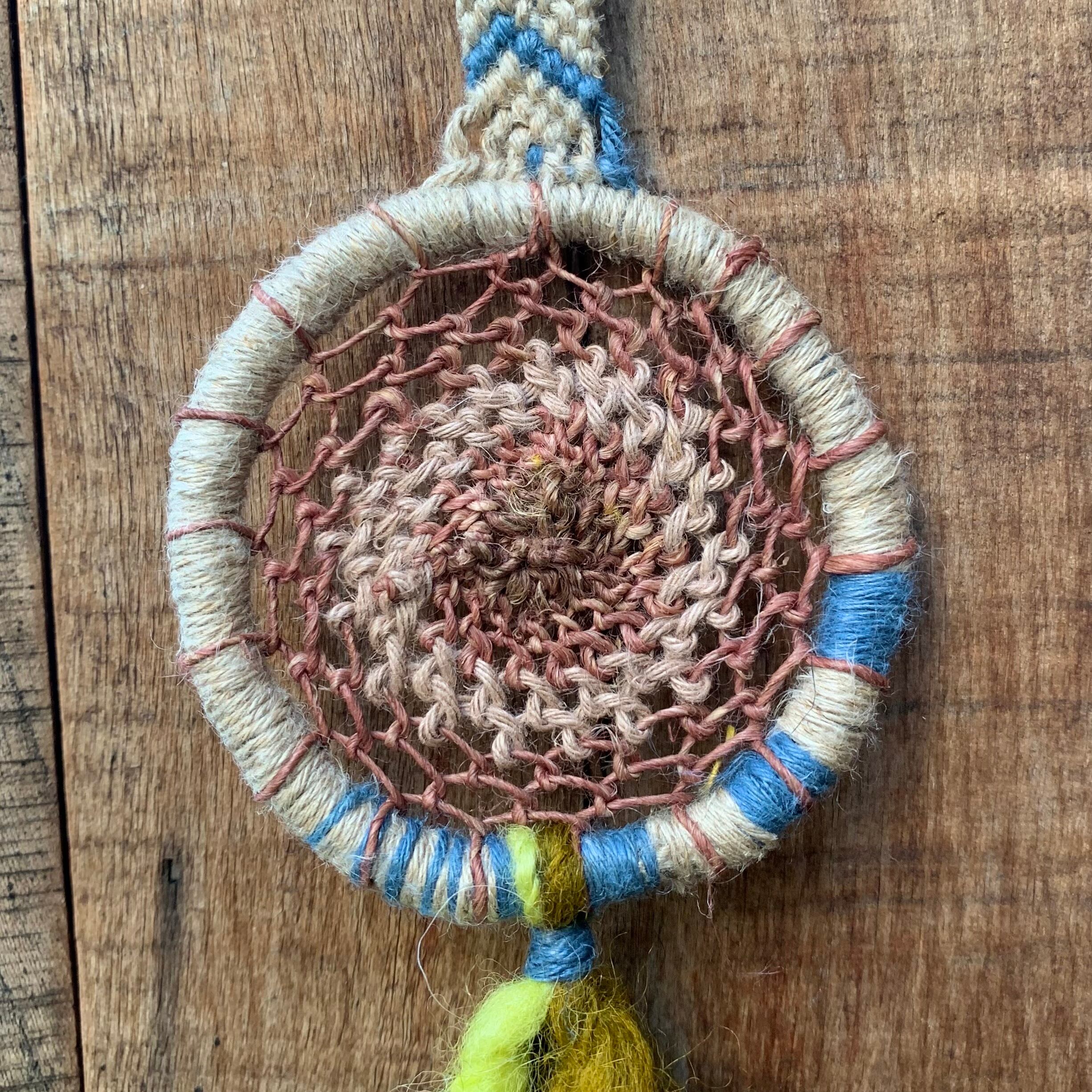 手染め手編みのヘンプドリームキャッチャー✬