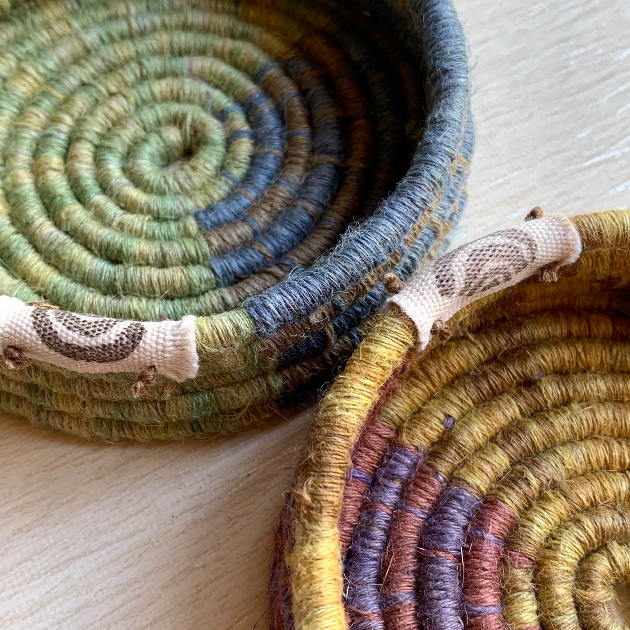 ぐるぐると渦を巻くように編み込まれた