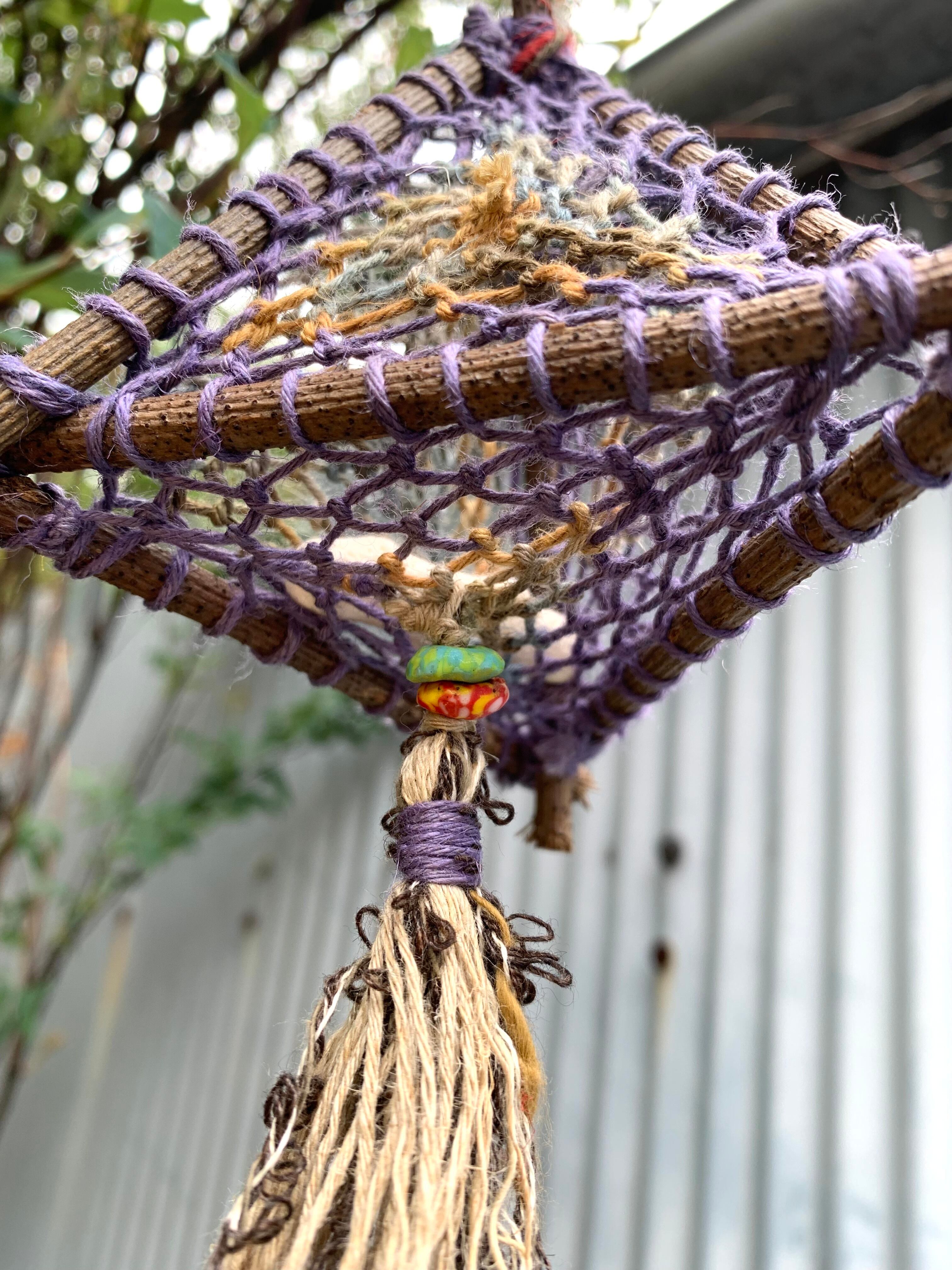 周りの枠は、耐久性のある蔓(ツル)を使用