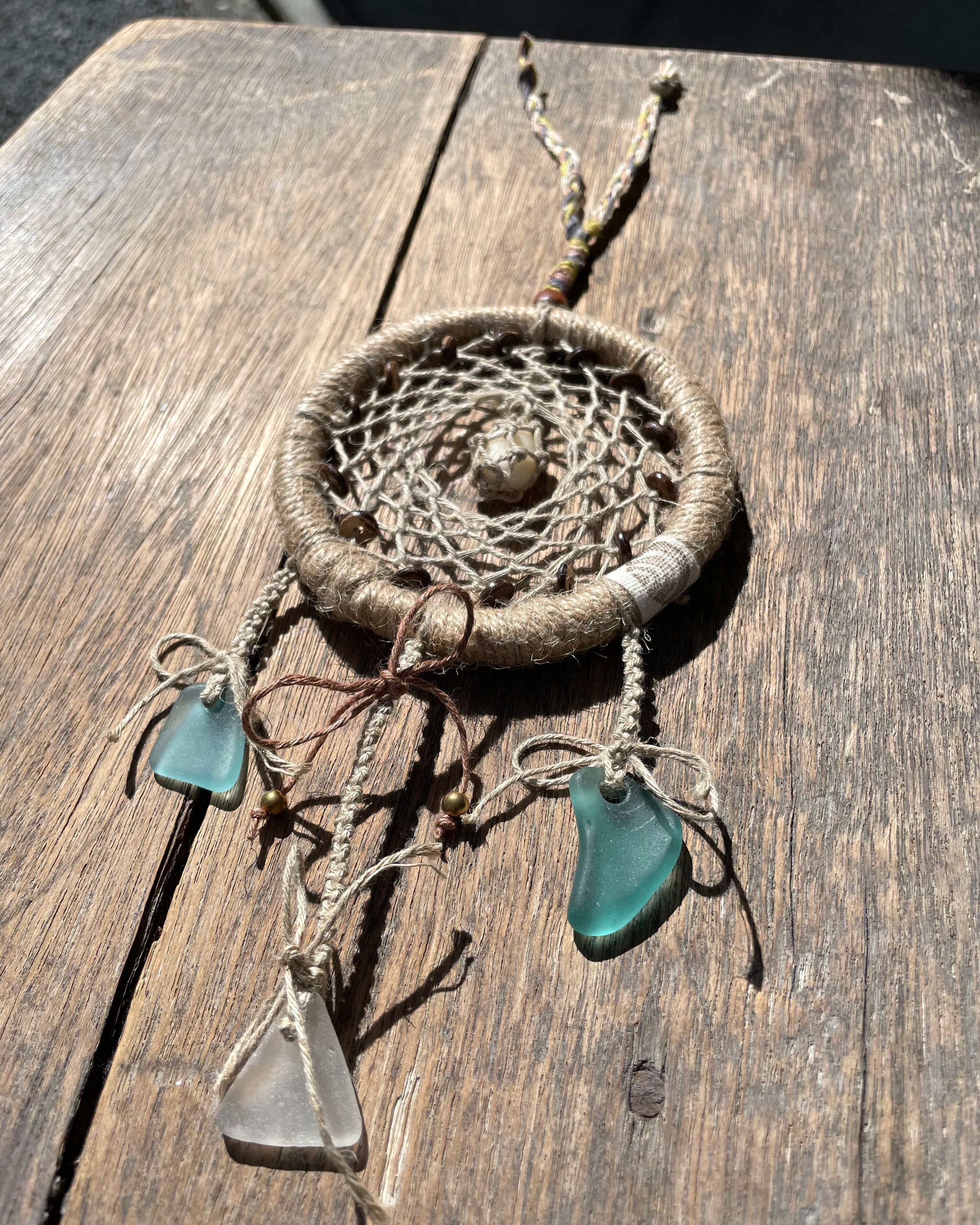 素材 : ヘンプ(麻)・シーグラス・真鍮・ウッドビーズ