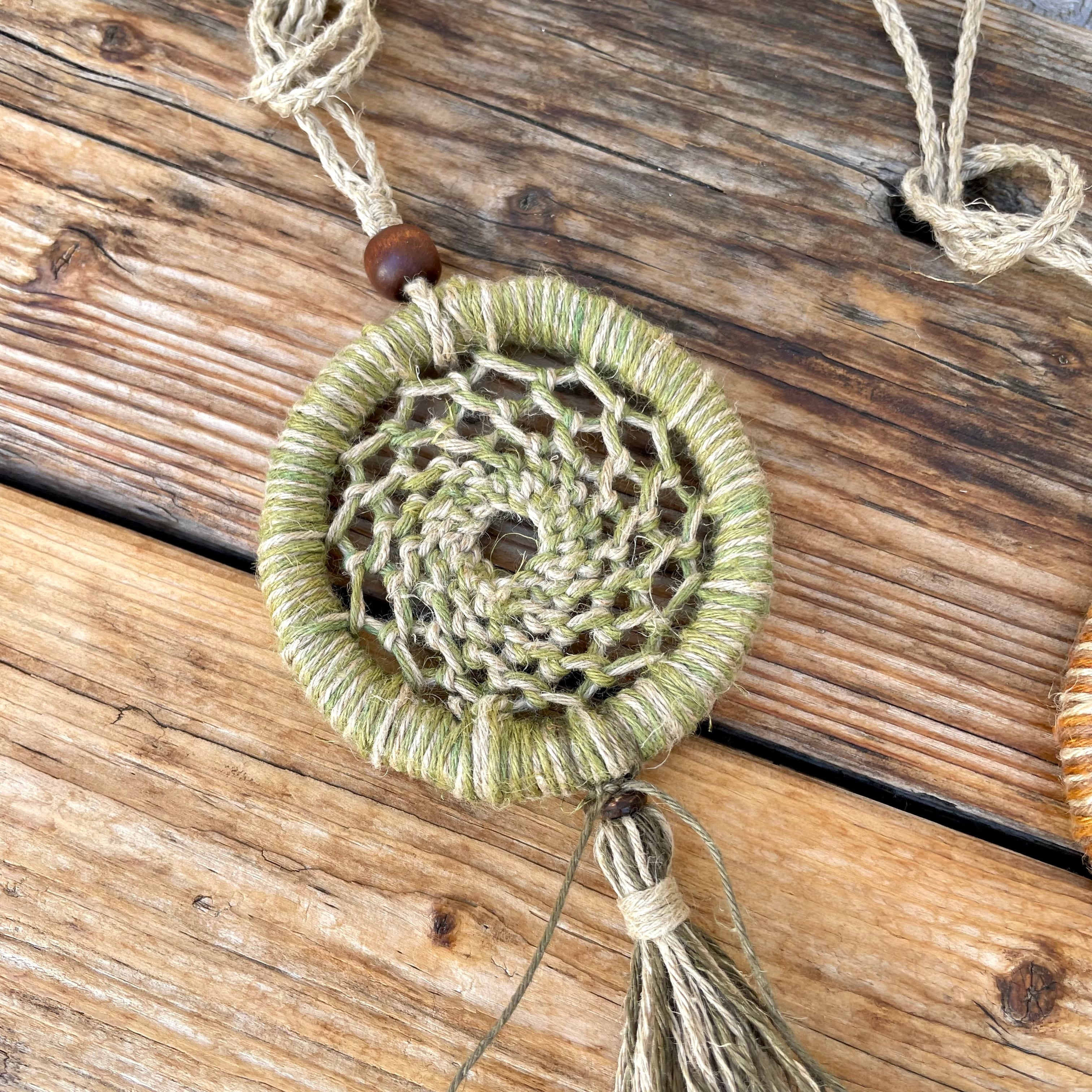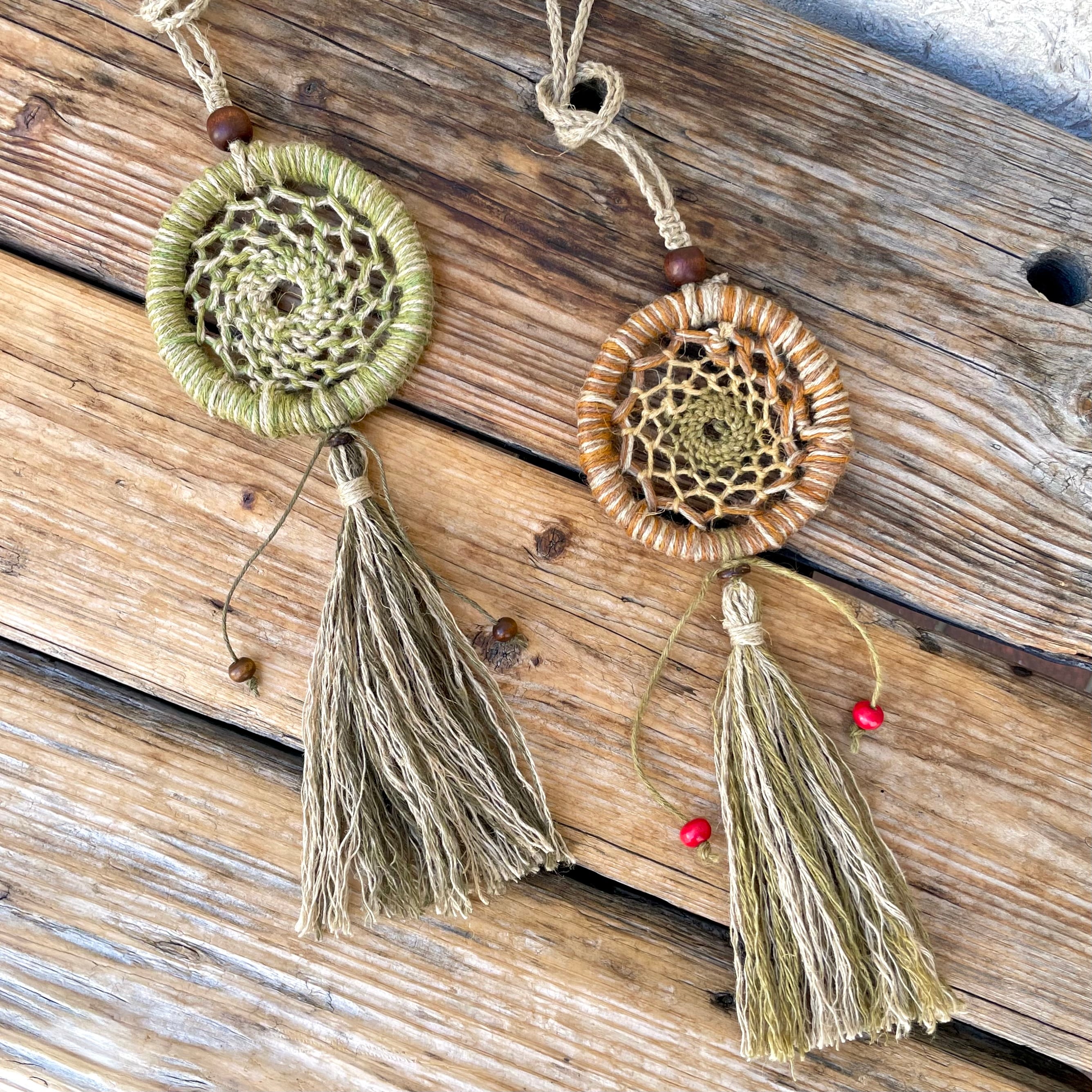 手染め手編みのヘンプアクセサリー