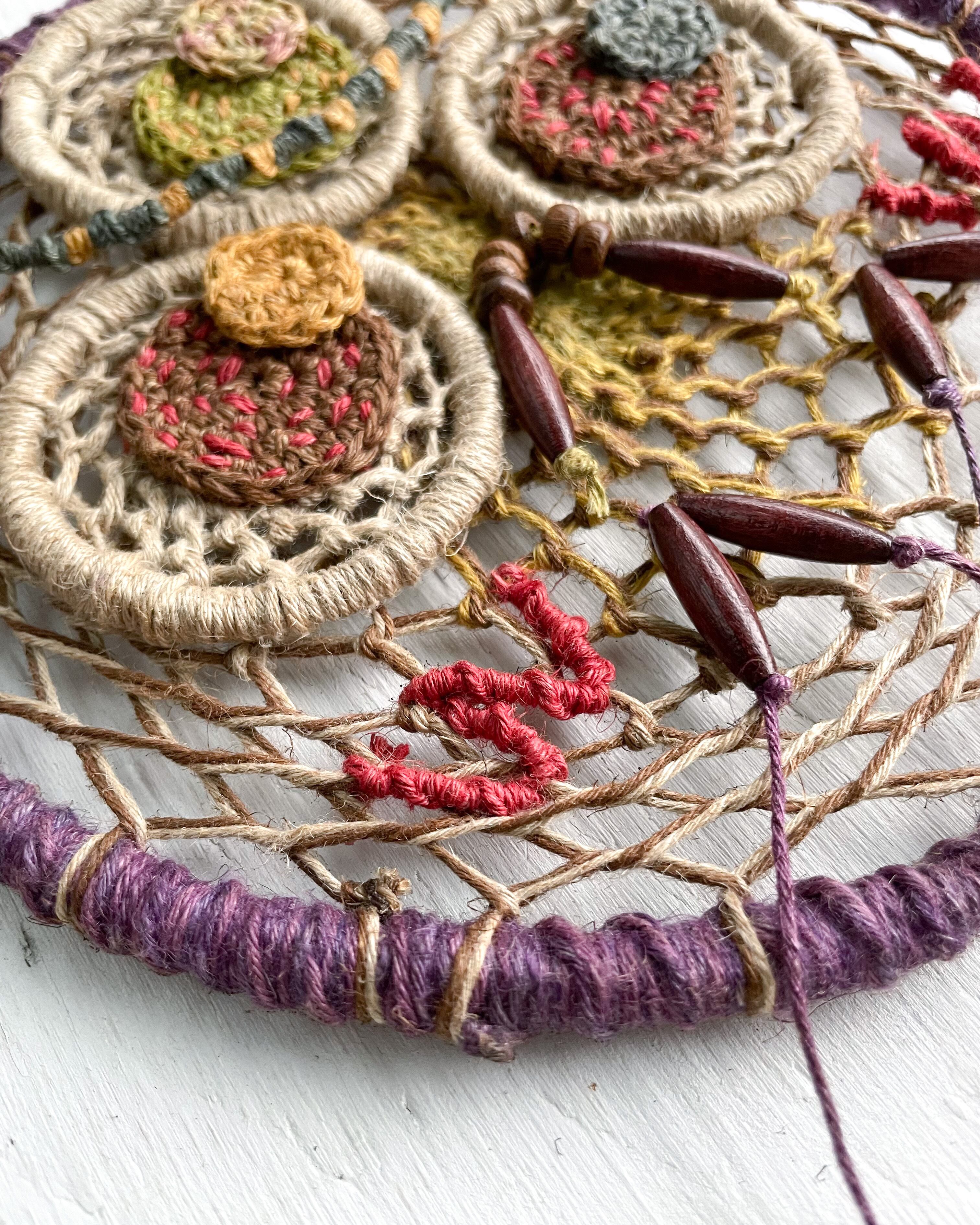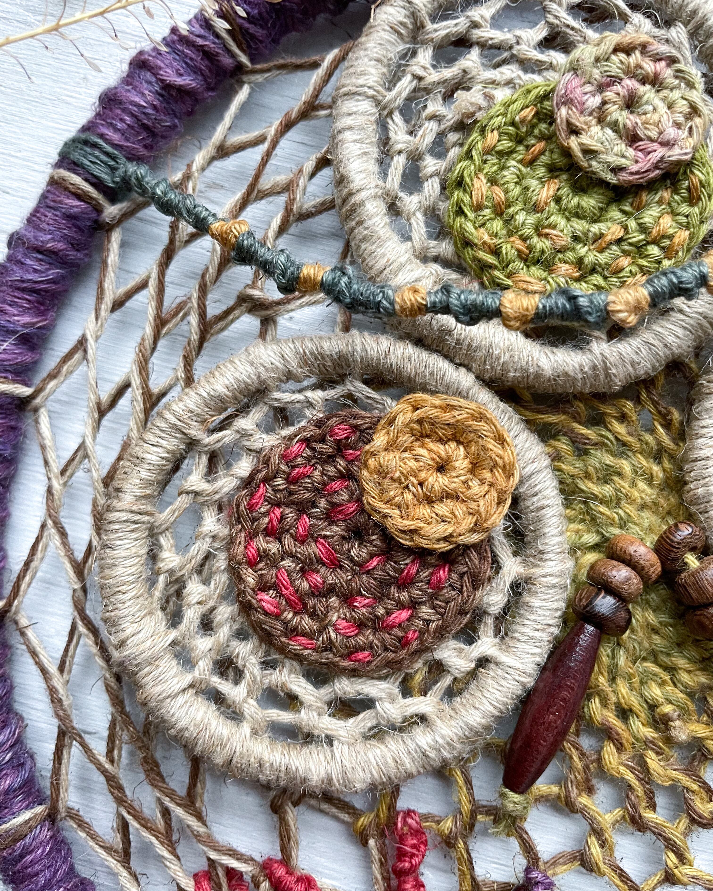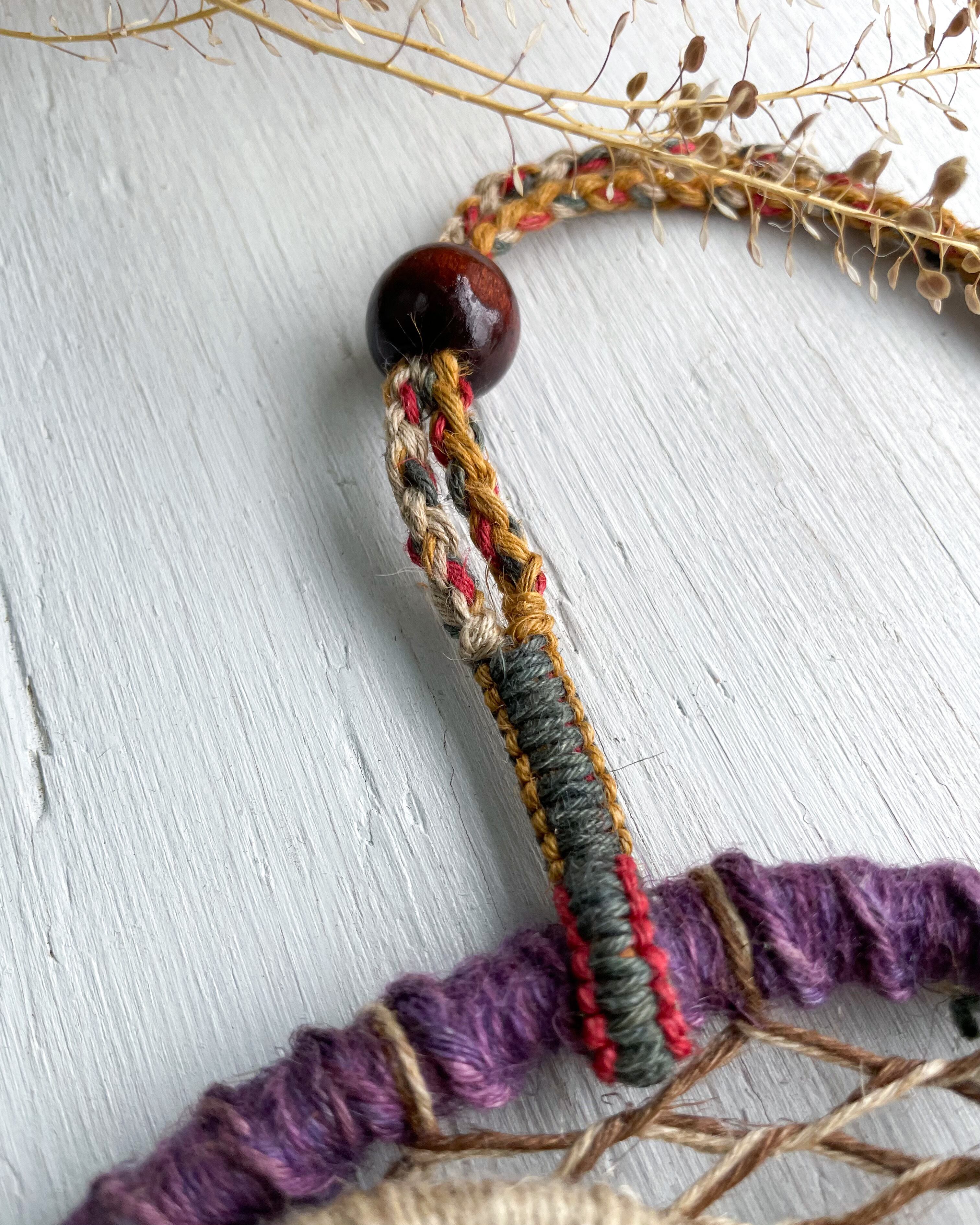 手染め手編みの麻紐で編んだ作品です!