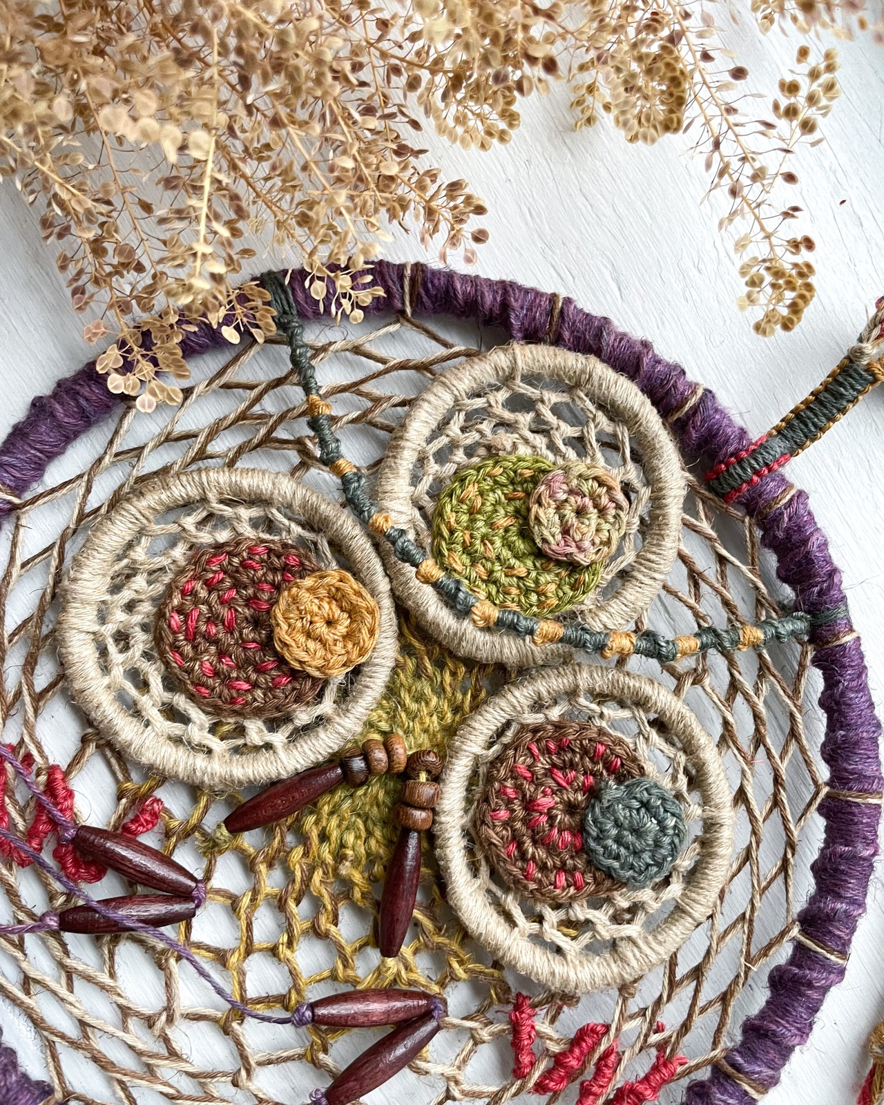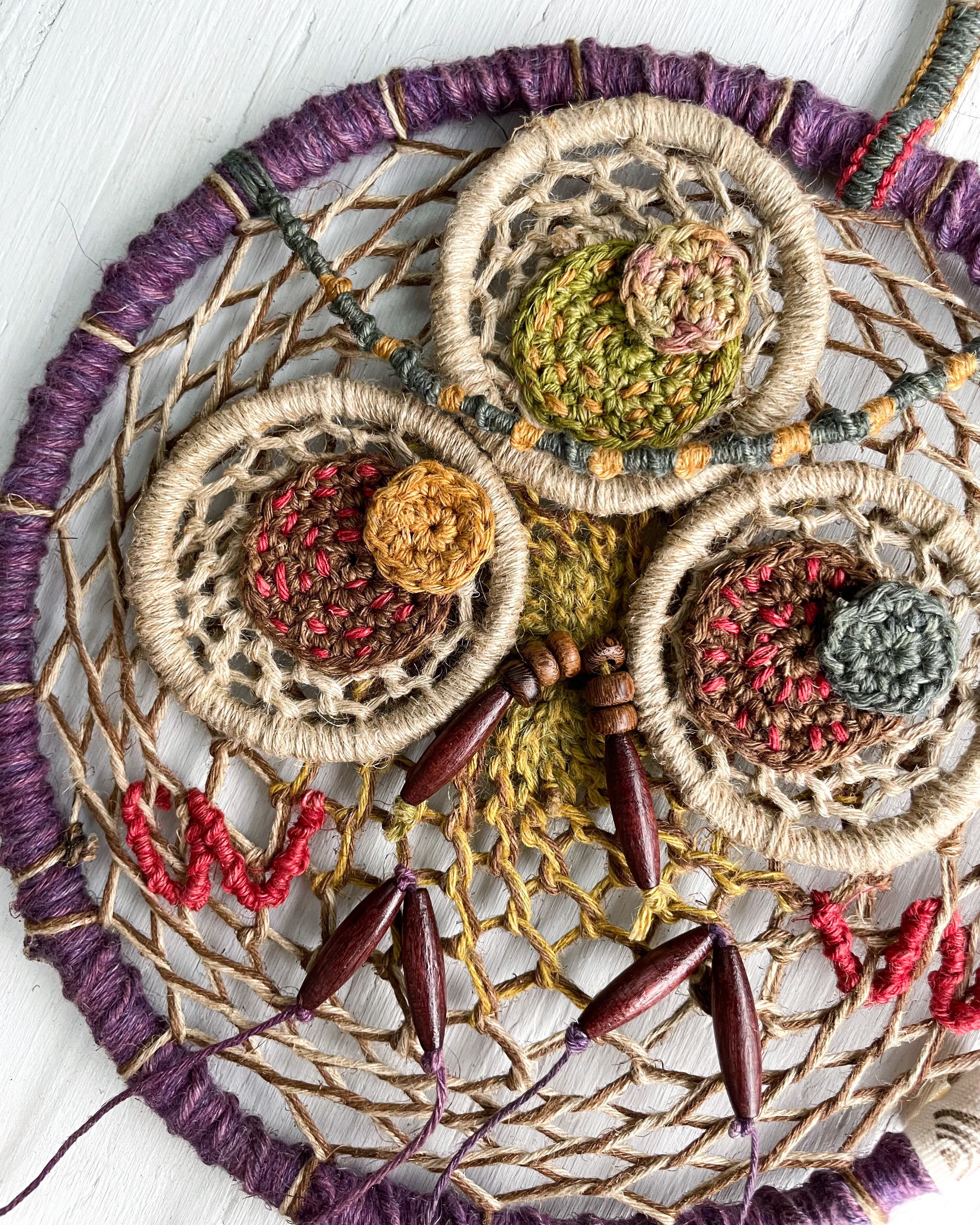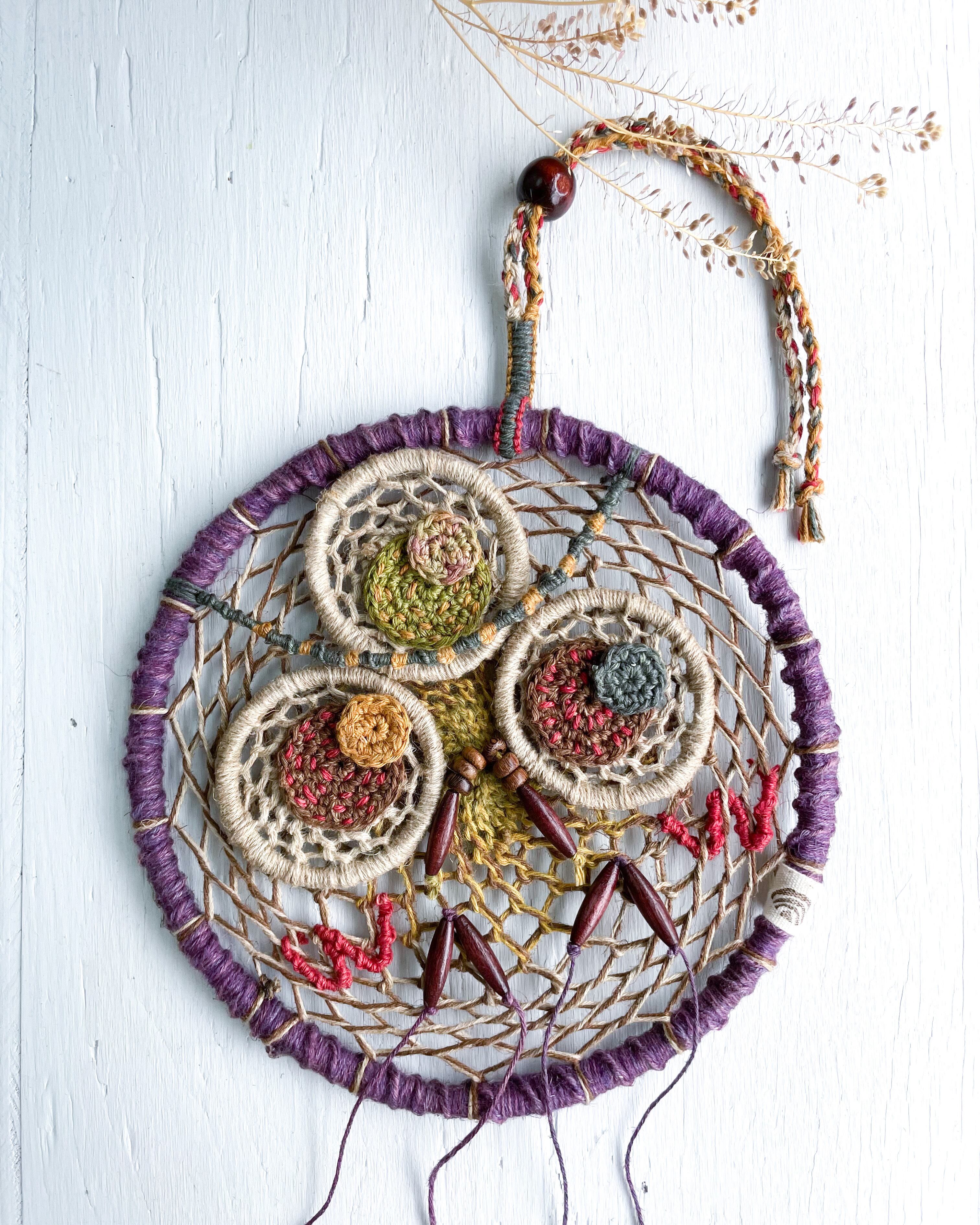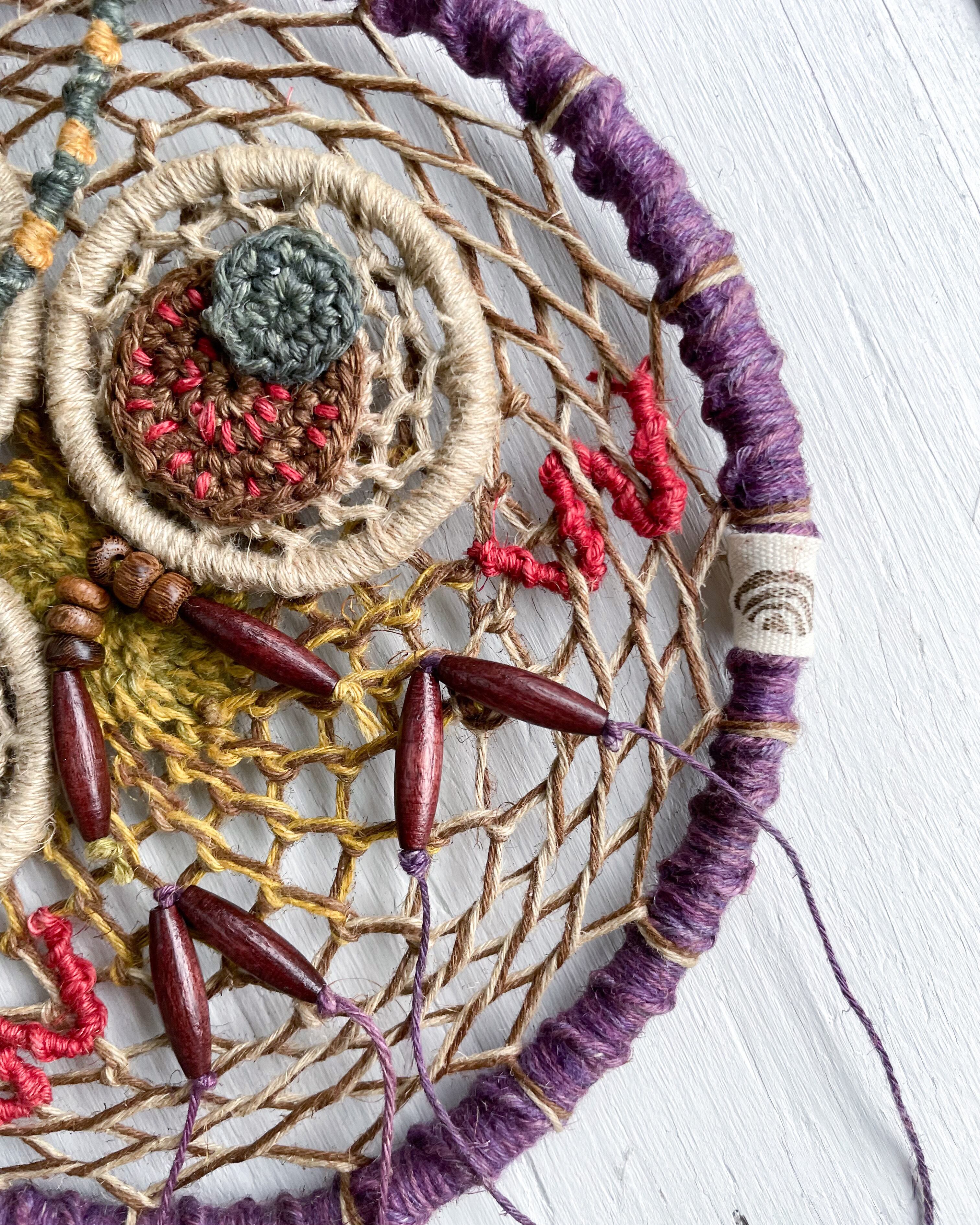 手染め手編みの麻紐で編んだ作品です!